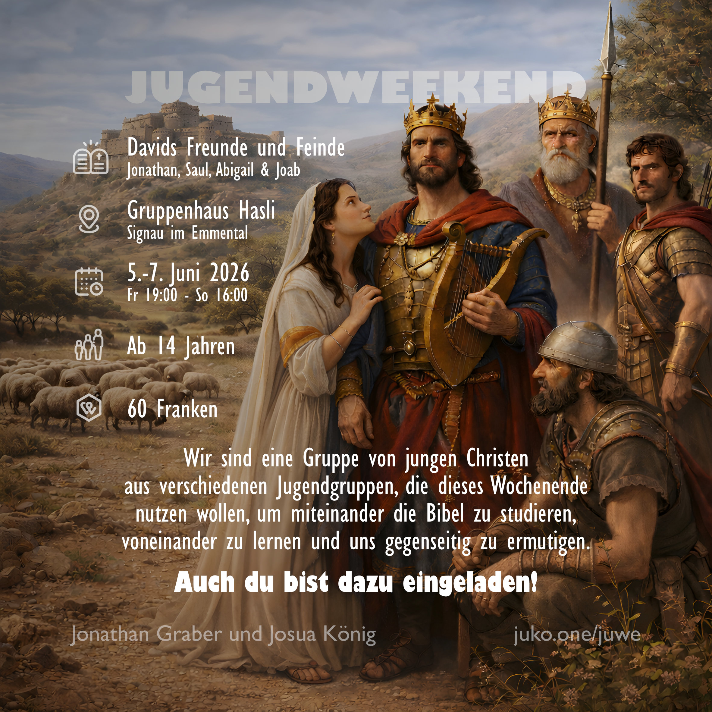 Davids Leben wird von unterschiedlichsten Beziehungen geprägt. In Freundschaft erfährt er Treue, in der Liebe Weisheit, in der Macht Spannung und Bedrohung – so reift er zum bekanntesten König überhaupt. Wir laden dich ein, mit uns diesen Weg zu gehen und die Prägungen in deinem eigenen Leben zu sehen.